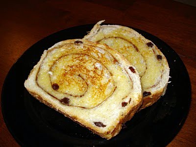 Mix powdered milk, yeast, salt, sugar, and shortening in the bowl of a mixer. Add warm water. Add about 2 to 2.5 cups flour and beat until well mixed. Add flour slowly until dough comes away clean from the edge of the mixing bowl. Add one cup raisins. Allow to knead for 5 more minutes. Do not add too much flour. Cover with greased plastic and allow dough to rise. Once it has doubled in size, divide into 3 parts. Roll out each third of dough into a small rectangle and spray lightly with water (or get hands wet and lightly rub surface of dough - the idea is to barely moisten the dough.) Sprinkle with cinnamon - the amount is up to you but I like quite a bit! Roll up lengthwise, pinching together seam and tucking in the ends to form a log. Place each log into a greased loaf pan and raise until the size of a bread loaf. Bake at 350 degrees for 30 minutes or until golden brown. Makes 3 loaves.