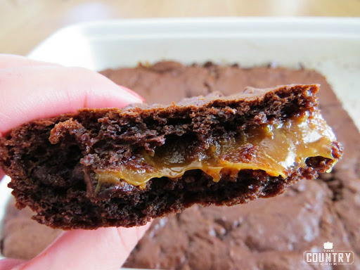 Take the rest of the cake batter and drop by the teaspoonfuls onto caramel layer.