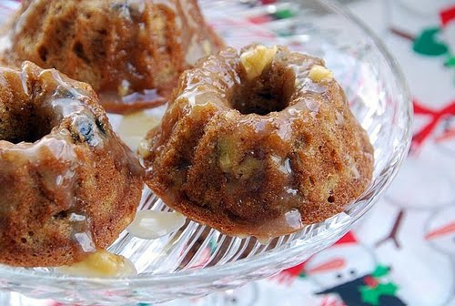 Mini Banana Bundts with Sticky Maple Walnut Glaze