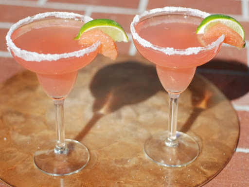 Combine the grapefruit juice, lime juice, orange liqueur, and ice in a blender and puree until smooth. Pour into a large pitcher and stir in the tequila. If youre not serving the margaritas in salted glasses, stir 1/4 teaspoon of salt into the pitcher of margaritas. Believe me, it will make a difference!