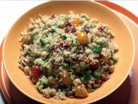 bulgur to coat salad. Season with salt and pepper.