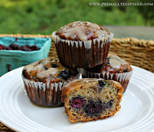 After the muffins have cooled, drizzle the glaze over each muffin.