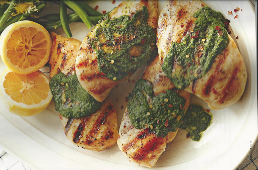 4. Finely shred peel from the lemon. Serve chicken topped with sauce and lemon peel. Squeeze lemon juice over.