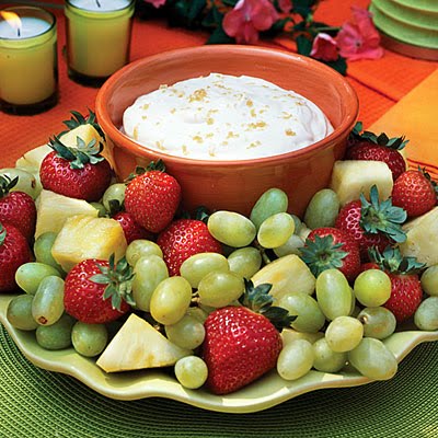 Prep: 10 min., Chill: 4 hrs. Choose any fresh, seasonal fruit to pair with this creamy dip. We prefer strawberries, pineapple, and grapes