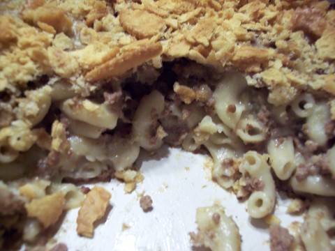 In a large bowl, combine the soup, cheese, mushrooms, pimientos, butter, thyme and salt. Stir in the noodles and beef mixture.