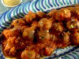 In a large saute pan, heat 3 tablespoons vegetable oil over medium heat, and brown the meatballs in batches until golden on all sides. Add more oil, as needed. Transfer the meatballs to the pan with the sauce and let simmer for 20 minutes. Sprinkle with fresh parsley and serve over the Couscous with Dried Dates.