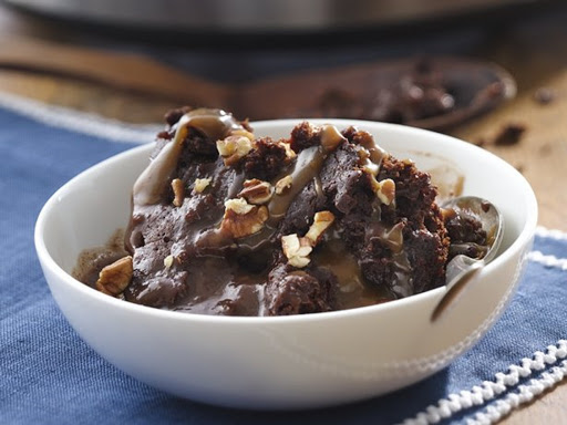 Cover; cook on Low heat setting 2 1/2 to 3 hours or until top springs back when touched lightly (center will still be soft). Turn off slow cooker; let stand uncovered 20 minutes to cool slightly. Serve warm pudding with remaining 1/4 cup caramel topping and chopped pecans.