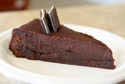 Heat oven to 350 degrees. Lightly grease 9” pie plate. Beat eggs in bowl. Stir in sugar, butter and vanilla. Stir together flour, cocoa and salt. Stir into butter mixture. Stir in chocolate chips and walnuts. Bake 30 minutes or until set.