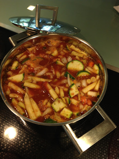 This is the fastest soup that I make. It is as nutritious as you want it to be and any other seasonal vegetables can be substituted or added.