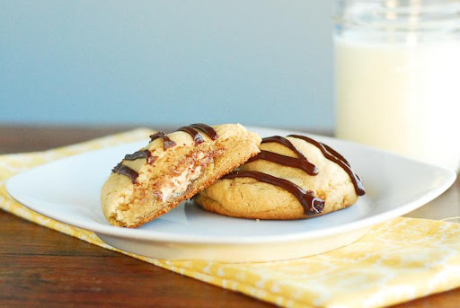 Combine the butter, peanut butter and sugars using a mixer on medium to low speed until light and fluffy. Slowly add eggs and vanilla until thoroughly combined. Then mix in flour, salt and baking soda. Cover and chill dough for 2-3 hours. Unwrap all the Snickers miniatures. Remove dough from refrigerator. Divide into 1 tbsp. pieces and flatten. Place a Snickers on the center of each piece of dough. Form the dough into a ball around each Snickers. Place on a greased cookie sheet and bake at 300 degrees for 10-12 minutes. Let cookies cool. Makes about 2 dozen.
