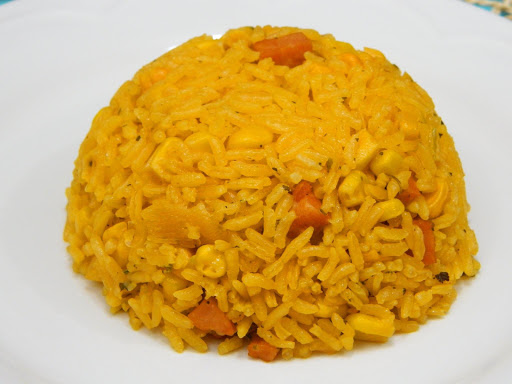 Raise the heat to high and add the rice and corn. Cook, stirring, until the rice is coated with the oil and the grains begin to turn "chalky," about 3 minutes. Pour in enough chicken broth to cover the rice by 1-inch. Bring to a boil and cook until the level of the broth meets the level of the rice. Lower the heat to very low, stir the rice thoroughly but only once, and cover. Cook until the rice is tender but with a little bite and all the liquid is absorbed, about 20 minutes. Fluff with a fork before serving.
