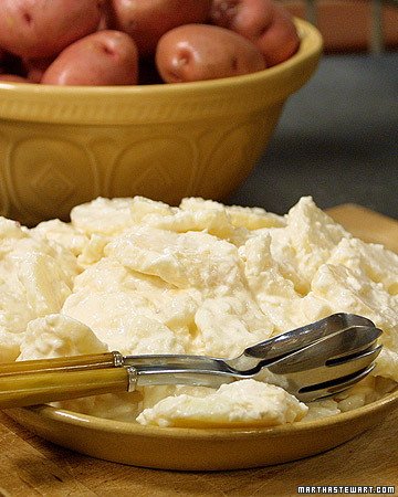 1. Place potatoes in a large pot, and cover with water; bring to a boil. Reduce to a simmer, and cook until soft when pierced with the tip of a knife, about 30 minutes. Drain, and allow to cool slightly. Peel potatoes, and slice into 1/4-inch-thick slices.