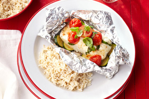 Package you ingredients in foil for grilling to make mealtime a gift. Fish fillets, fresh basil, cherry tomatoes and zucchini cook to perfection in foil packets.