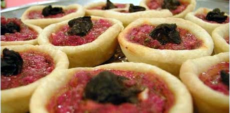 3. Divide pastry in half. Roll out each half to 1-inch diameter rope; cut into 1/2-inch pieces. Flatten each piece with fingertips to make thin 2-inch diameter circle, leaving edge slightly raised. Place on parchment paper-lined rimmed baking sheets or press into miniature tart tins; top each with 2 tsp of the pepper mixture. Place 1 snail on each circle.