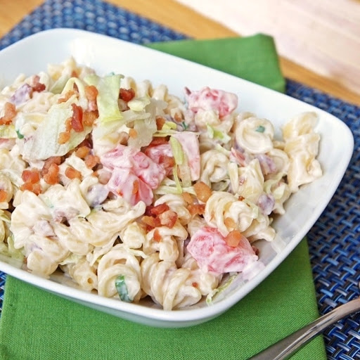 3. Gently mix in the bacon, tomato, and green onions. Stir in lettuce just before serving.