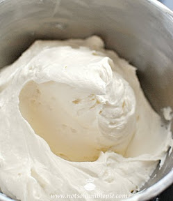 Beat the cheese, sugar and vanilla until smooth and fluffy. In a separate bowl, beat the heavy cream to nearly stiff peaks, then add the whipped cream into the cheese mixture and quickly and briefly beat to combine. Do not over beat.