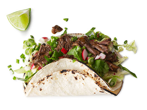 Reduce the heat to low. Cover and gently simmer until the meat is very tender, about 2 hours, adding up to 1 1/2 cups water if the sauce gets too thick. Remove the bay leaves and season with salt and black pepper. Serve in tortillas with assorted toppings.