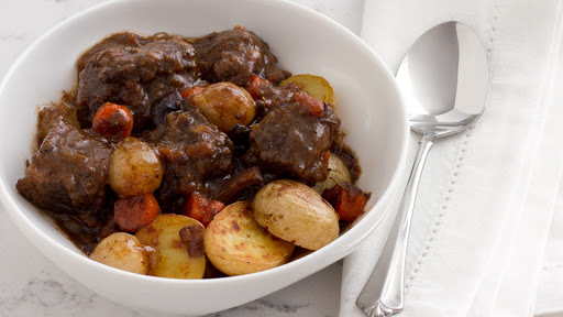 Serve stew over roasted fingerling potatoes and garnish with chopped parsley.