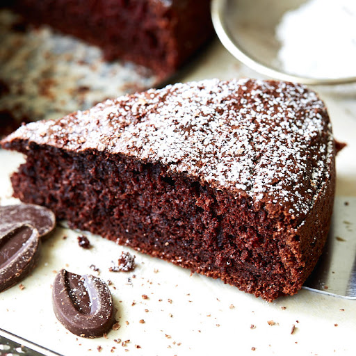 Let the cake cool slightly, garnish with powdered sugar and chocolate shavings (optionally), and serve.