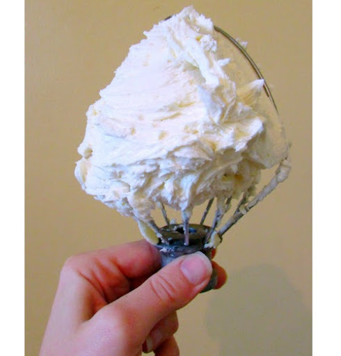 4. Turn mixer to high and beat for a couple of minutes, until light and fluffy.