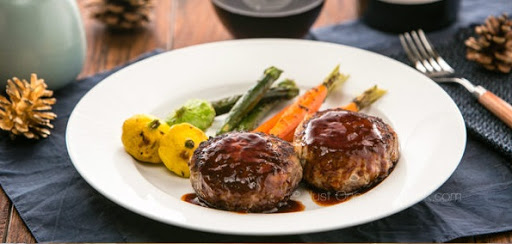 When the sauce thickens, pour the sauce over the hamburger steaks. Serve the hamburger steak with vegetables over your favorite side dish.