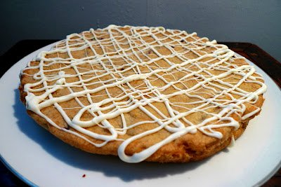 Spread the dough evenly in the prepared pan. Bake for 35 min. or until a toothpick comes out clean. When cooled, drizzle with melted white chocolate.