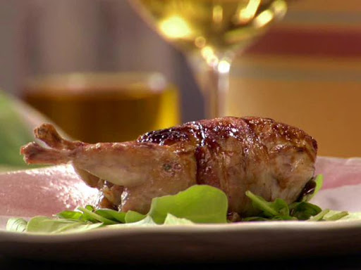 Divide the arugula among 4 serving plates. Place a quail on each pile of arugula and spoon some of the sauce on the quail and the arugula. Serve immediately.