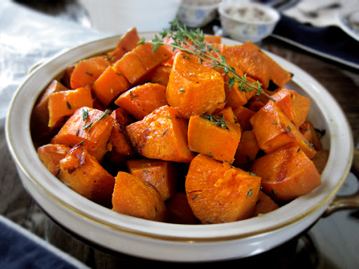 Roasted Sweet Potatoes with Maple-Dijon Dressing
