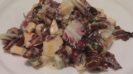 Chop grilled Treviso into one-inch cubes and toss with diced papaya, candided pecans and dressing.