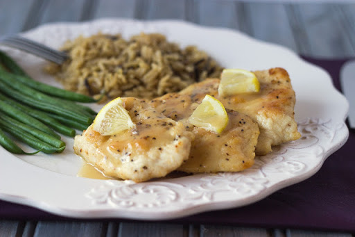 1. Place each chicken breast half between 2 sheets of heavy-duty plastic wrap; pound to 1/2-inch thickness using a meat mallet or small heavy skillet. Place 1 teaspoon flour in a small bowl, and place remaining flour in a shallow dish. Sprinkle both sides of chicken evenly with salt and pepper. Dredge chicken in flour in shallow dish; shake off excess.
