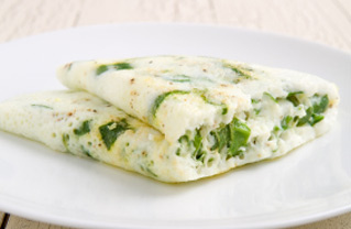 In a bowl, beat together the egg whites, spinach and onion powder.