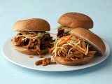 Shred the pork with two forks into large chunks and add back into the thickened sauce. Toss well to coat. Let stand 10 minutes, tossing occasionally, to let the pork absorb the sauce. Serve on a bun with the slaw on the sandwich or on the side.