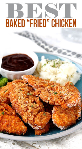 Bake at 400F degrees for 10-12 minutes until golden then carefully flip chicken and bake another 5 minutes then broil to desired crispiness.*