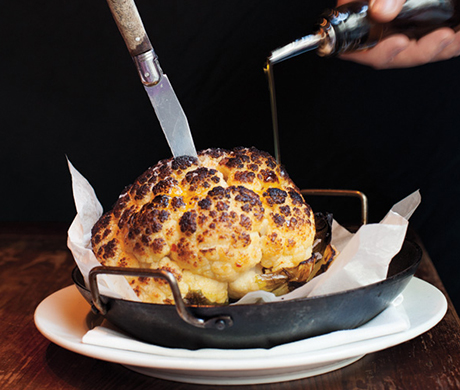 Precooking the cauliflower in seasoned poaching liquid infuses it with flavor; roasting it makes it crisp.