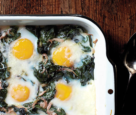 This dish is a great way to serve eggs for a group. Take the eggs out of the oven when the whites are slightly undercooked; carryover cooking will finish them.
