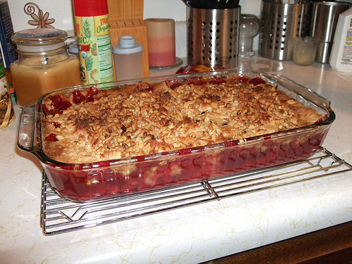 Bake for one hour. Use heavy oven mitts to remove the dump cake from oven or let your older helper do it.