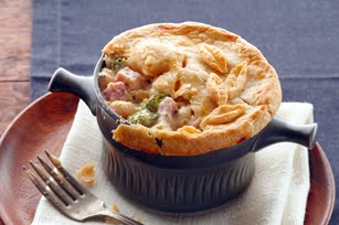BEAT egg and water until well blended; brush onto top edges of ramekins. Top with pie crust circles; press gently onto top edges of ramekins to seal. Top with leaf cutouts; brush lightly with egg wash. Discard any remaining egg wash. Place ramekins on baking sheet. Cut slits in crusts to vent.