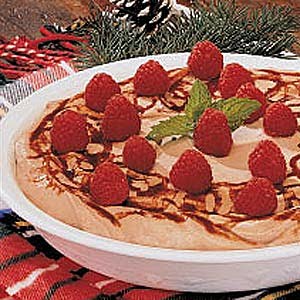 Let stand at room temperature for 20 minutes before serving. Garnish with raspberries.