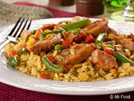powder; let stand 5 minutes. Bring mixture to a boil and stir in chicken and vegetables.