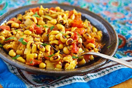 If cooking in a regular pot, cover and simmer until the black-eyed peas are tender (depending on the age of your peas, 30-60 minutes). Check seasoning and add more salt and garam masala if necessary.