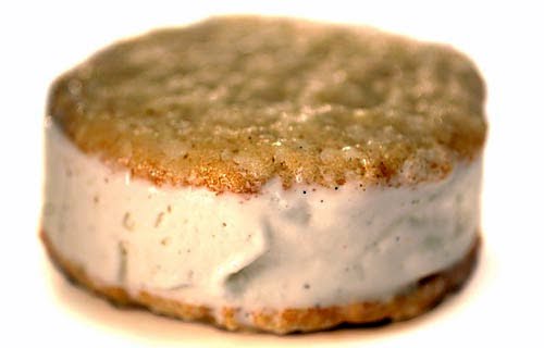 7. To assemble, spread one-third cup ice cream (slightly softened) over the bottom of one cookie, and carefully top with another cookie. Press firmly but gently to avoid breaking the cookies. Run a knife or offset spatula around the edges to clean up any ice cream hanging over the edge. Freeze for at least 1 hour to firm the ice cream. Repeat with all the cookies.