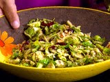 Shred the Brussels sprouts by removing the core and thinly slicing. Warm the olive oil in a large skillet over medium heat. Add the Brussels sprouts, nutmeg, and salt and pepper, to taste. Cook, stirring, until the Brussels sprouts are bright and slightly wilted, about 2 to 3 minutes. Add the walnuts and the cranberries and toss to combine. Turn out into a serving bowl and serve warm.
