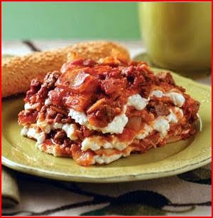 Spread a fourth of the meat sauce in an ungreased 5-qt. slow cooker. Arrange a third of the noodles over sauce (break the noodles if necessary). Combine the cheeses; spoon a third of the mixture over noodles. Repeat layers twice. Top with remaining meat sauce.