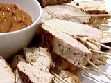 Heat a charcoal grill. Grill the chicken breasts for 10 minutes on each side, until just cooked through. Cool slightly and cut diagonally in 1/2-inch-thick slices. Skewer with wooden sticks and serve with Satay Dip.