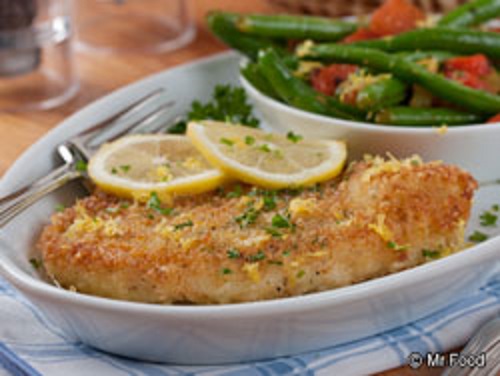 1.In a shallow dish, combine Parmesan cheese and bread crumbs; mix well.