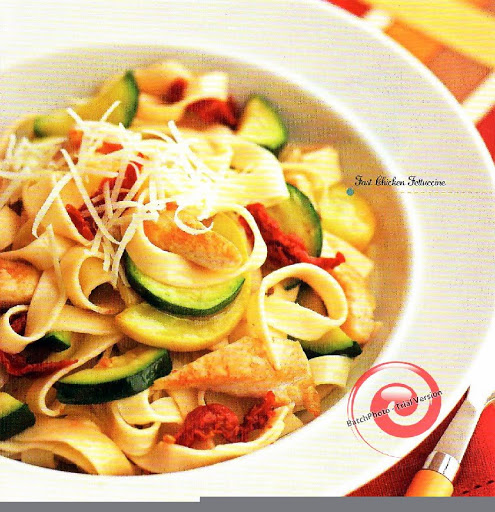 3. In a large skillet, heat 1 tablespoon reserved oil over medium-high heat. Add zucchini; cook and stir for 2 to 3 minutes or until crisp-tender. Remove from skillet. Add remaining reserved oil to skillet. Add chicken; cook and stir for 2 to 3 minutes or until no longer pink. Add zucchini, chicken, and tomato to cooked pasta; toss gently to combine. Sprinkle individual servings with cheese and season to taste with pepper.