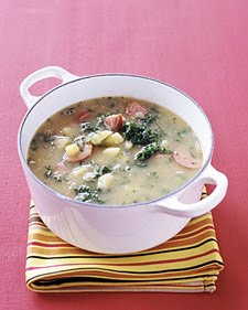 In a blender, puree half the soup. Return to pot; add kale and sausage. Simmer until kale is wilted, 10 to 15 minutes.