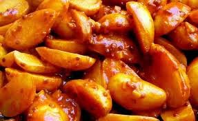 add the garlic mixture to the potatoes w/the sliced bell pepper & cook, stirring for 2 minutes, sprinkle w/coarse salt, serve