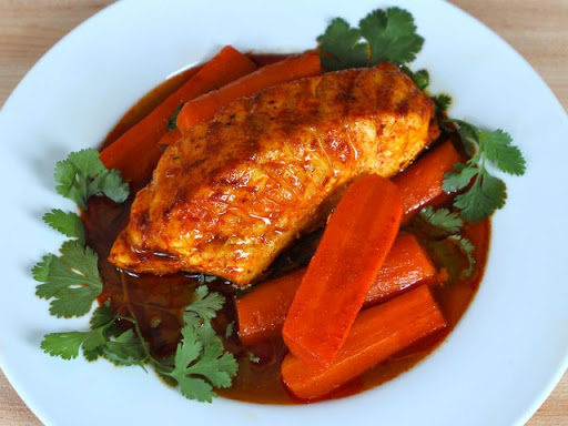 Season fillets with salt and pepper to taste. Serve with cooked carrots and sauce from the pan, garnished with fresh cilantro. Goes great over rice, quinoa, or couscous!