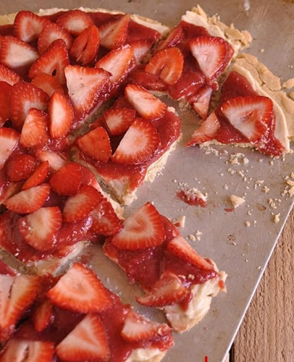 Cut fresh strawberries crosswise to make rounds that resemble pepperoni, place on pizza and serve.